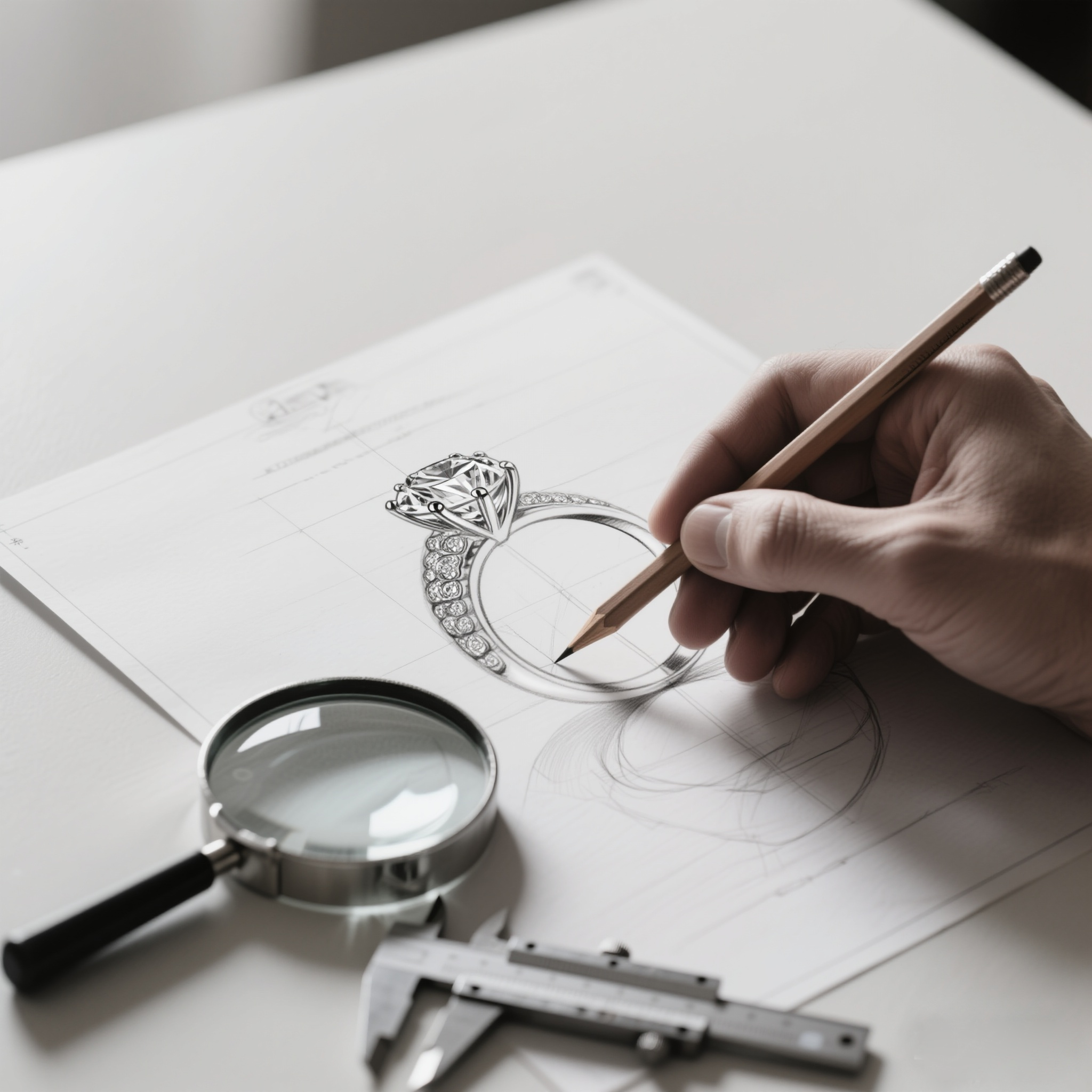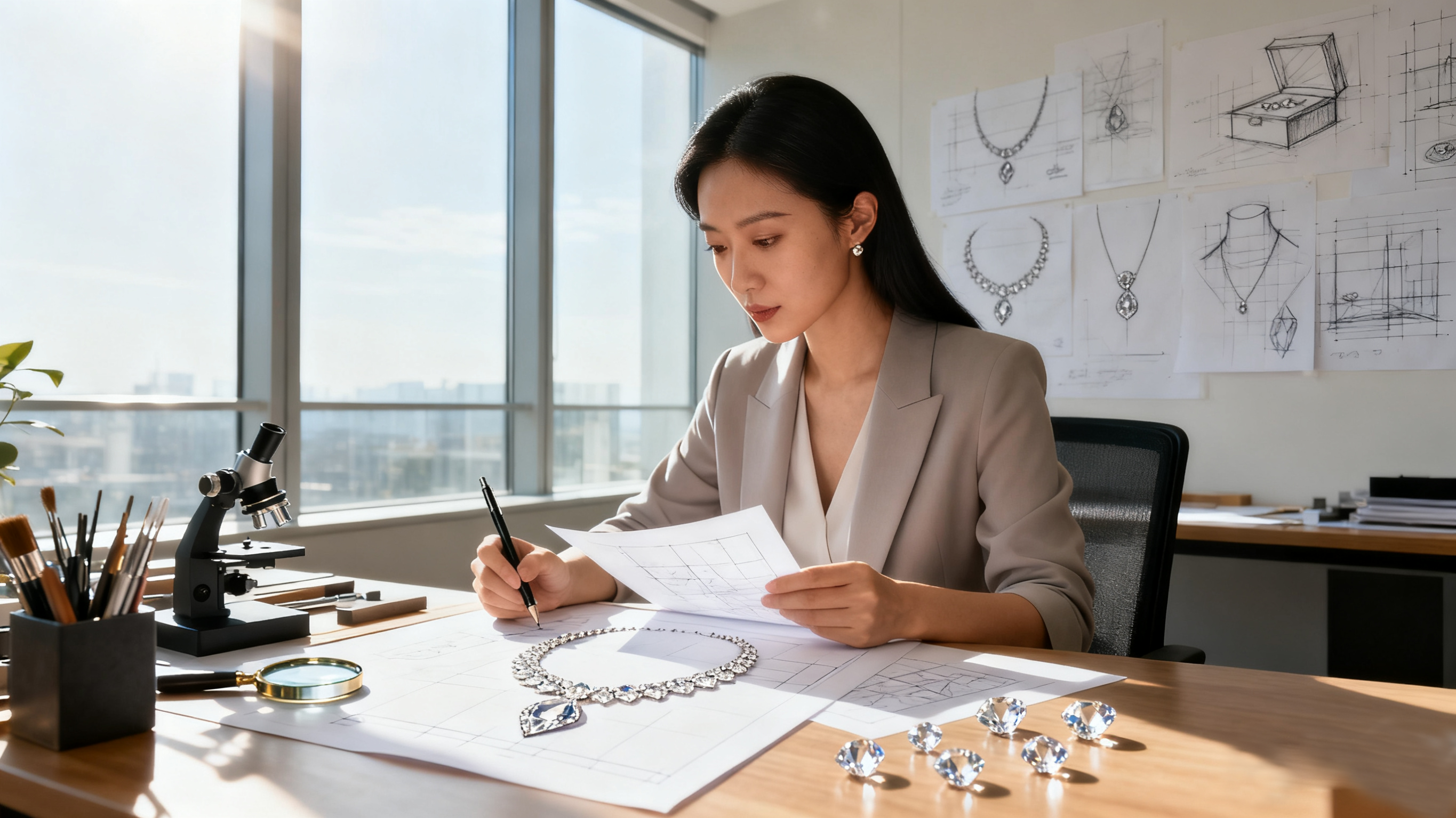 3. 设计研发: 组建了专业的珠宝设计师团队,致力于将现代美学与经典设计相融合,打造兼具时尚感与永恒价值的钻石珠宝。